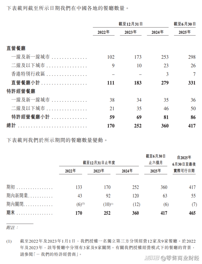遇見(jiàn)小面的餐廳采用直營(yíng)或特許經(jīng)營(yíng)模式,核心收入來(lái)源為直營(yíng)餐廳。2025年上半年,直營(yíng)餐廳營(yíng)收占比達(dá)89%,特許經(jīng)營(yíng)餐廳貢獻(xiàn)10.9%的收入。
