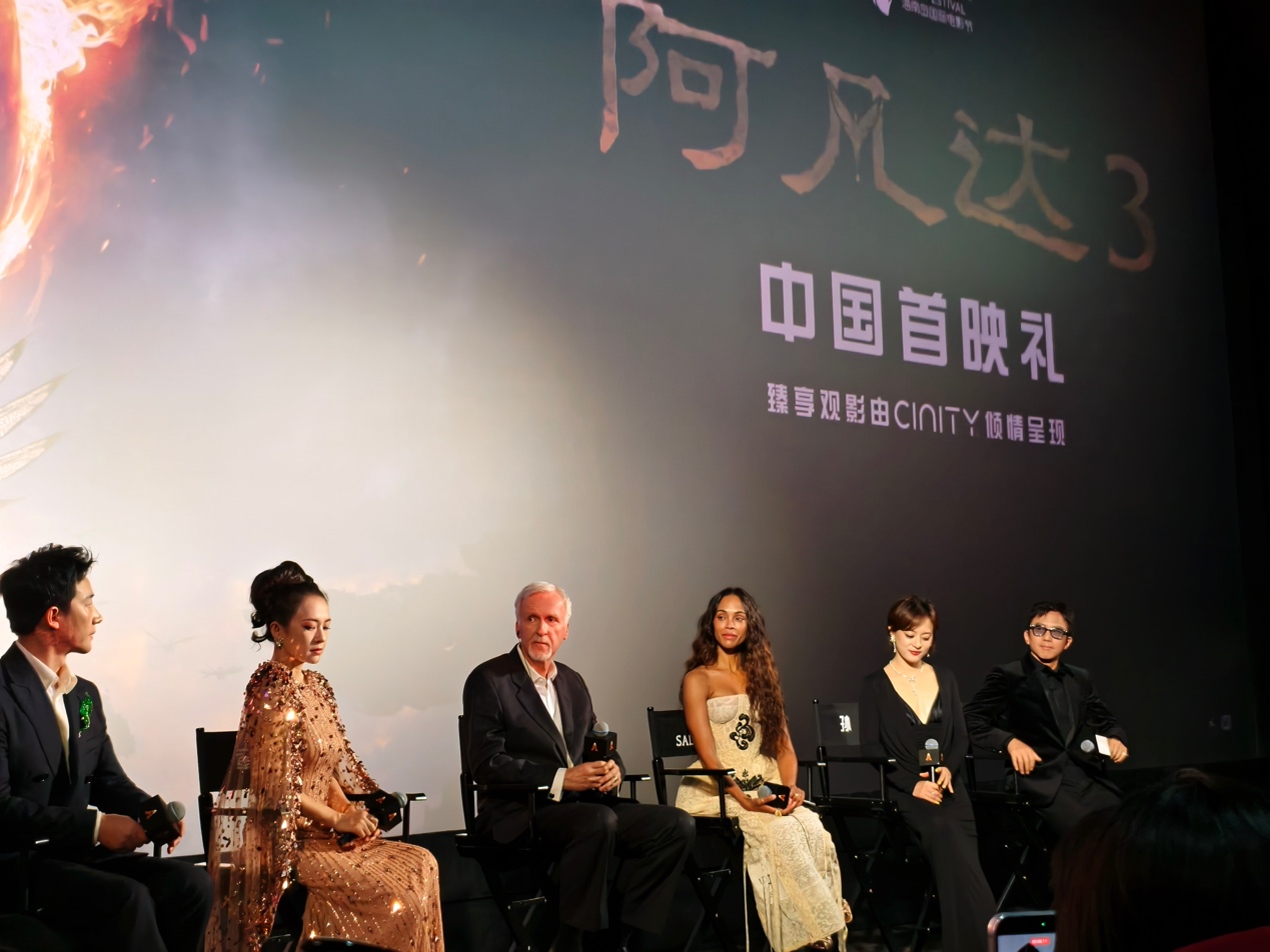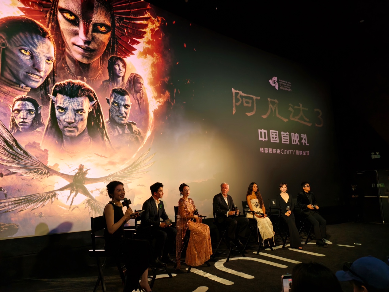 由20世紀影業(yè)出品的年度壓軸巨制《阿凡達3》(Avatar: Fire and Ash)12月8日晚在第七屆海南島國際電影節(jié)期間舉辦中國首映禮。導演詹姆斯·卡梅隆攜主演佐伊·索爾達娜、中文配音演員章子怡、黃軒、鄧超、孫儷等主創(chuàng)團隊亮相現(xiàn)場,與中國的首批觀眾分享創(chuàng)作故事。