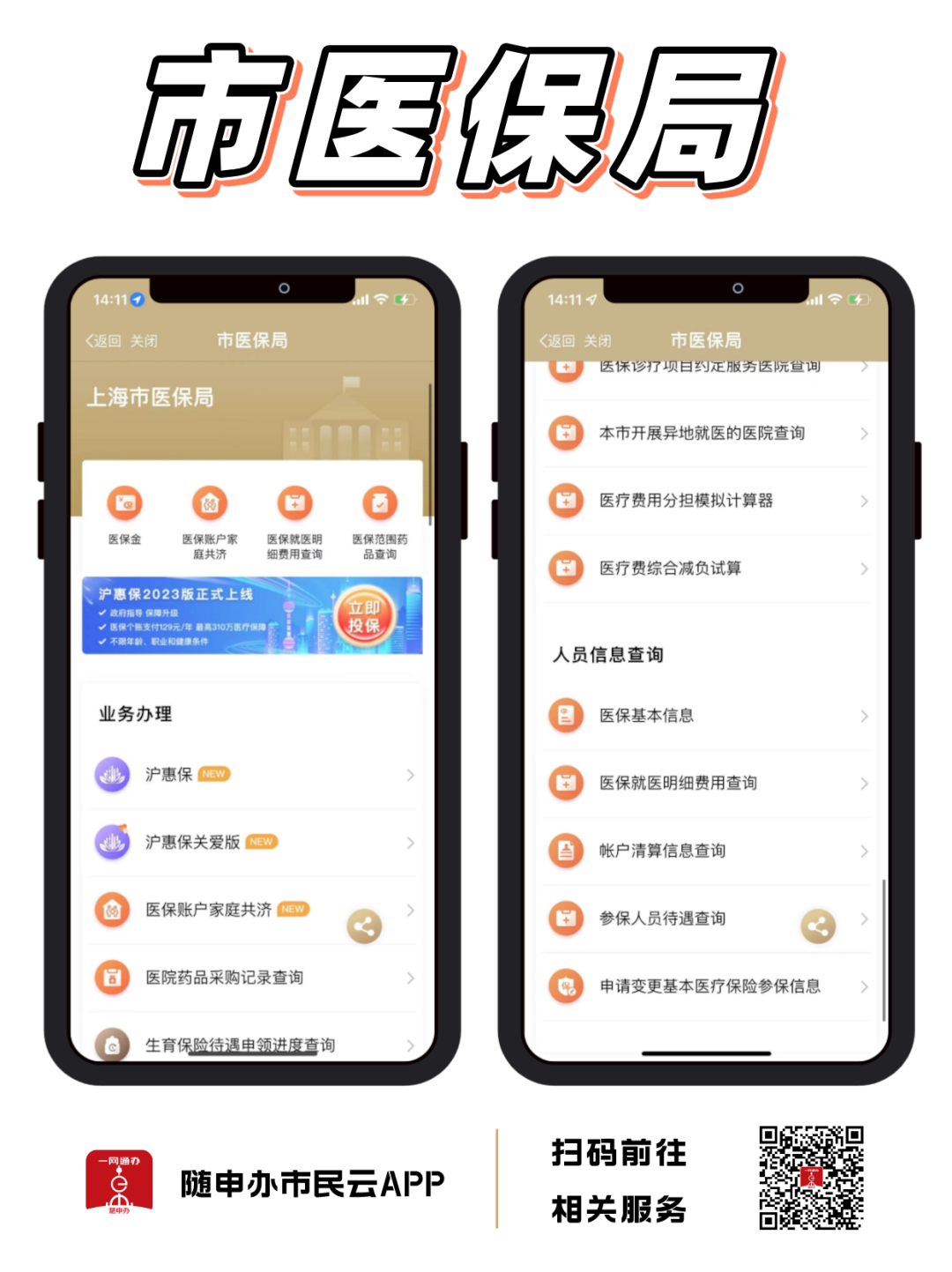 “隨申辦市民云”APP【市醫(yī)保局】專區(qū)提供,【醫(yī)保金】【醫(yī)保賬戶家庭共濟(jì)】【參保人員待遇查詢】等多項(xiàng)相關(guān)服務(wù)。