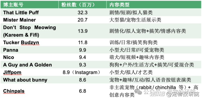 附表:Tiktok / Instagram排名前十的寵物博主(截至2025年11月)