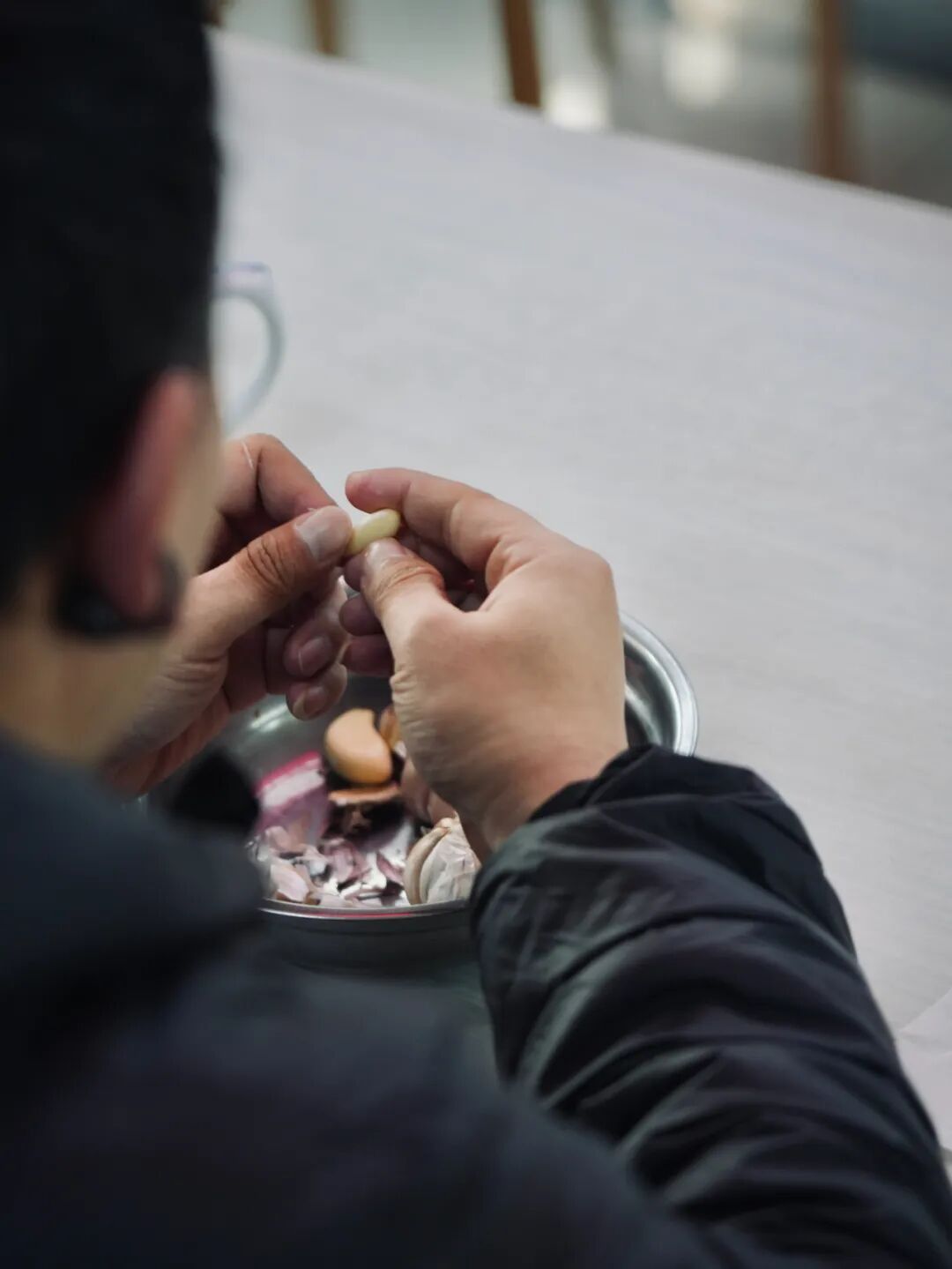 “我們常拼拌面。”順哥一邊剝蒜一邊跟我說。