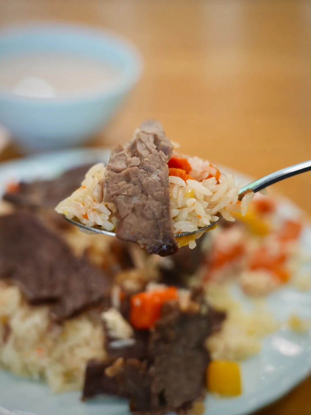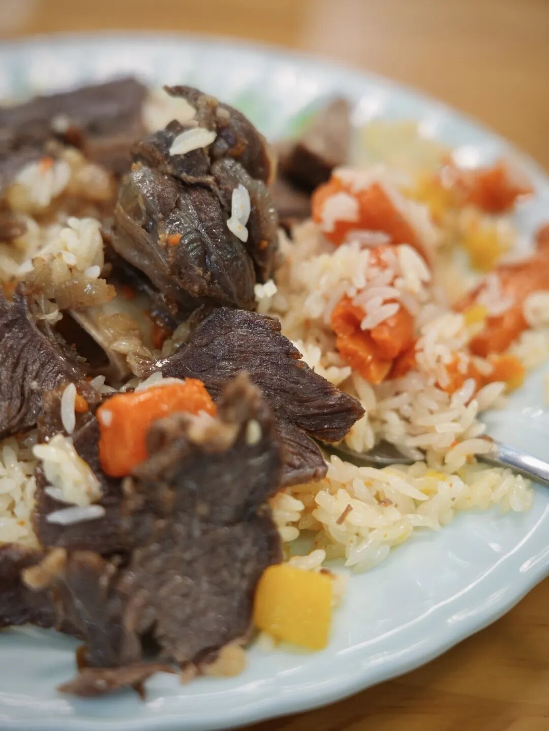 抓飯的米粒顆顆分明,松散不油膩,吸飽了肉汁和胡蘿卜的甜。