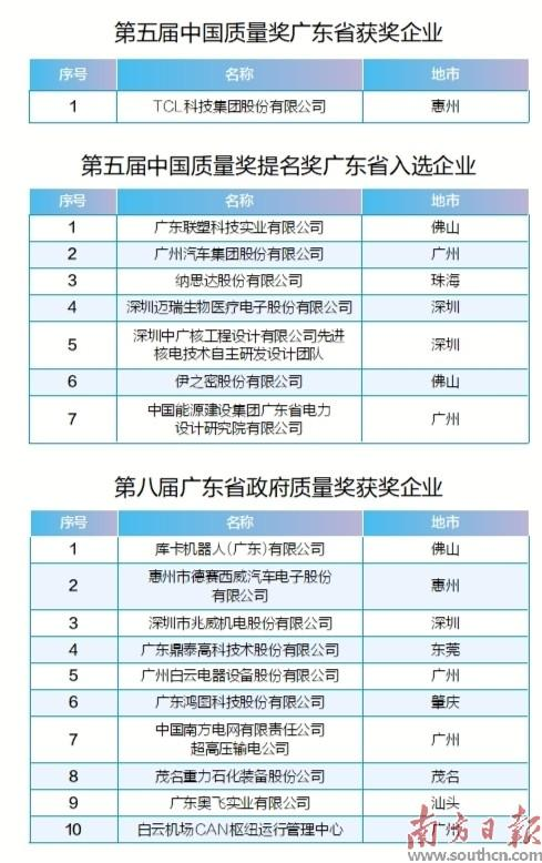 9月16日,中國質(zhì)量(南京)大會(huì)舉辦,會(huì)上頒發(fā)第五屆中國質(zhì)量獎(jiǎng)。廣東獲獎(jiǎng)總數(shù)為8家,較第四屆增加了3家。