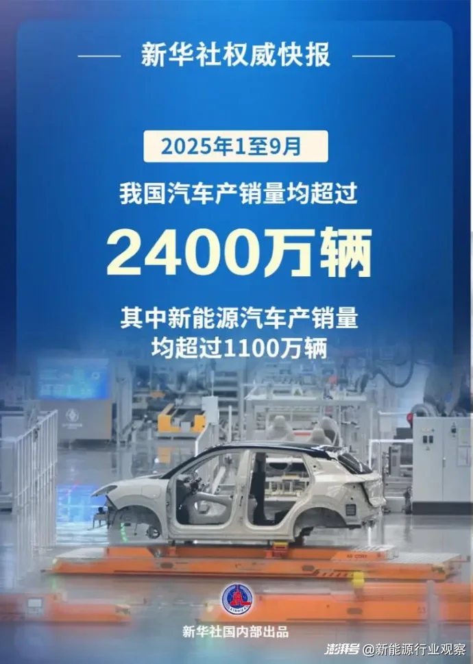 2025年前9個(gè)月,我國新能源汽車產(chǎn)銷量便雙雙突破千萬輛,再次迎來了一個(gè)歷史性的轉(zhuǎn)折點(diǎn)。