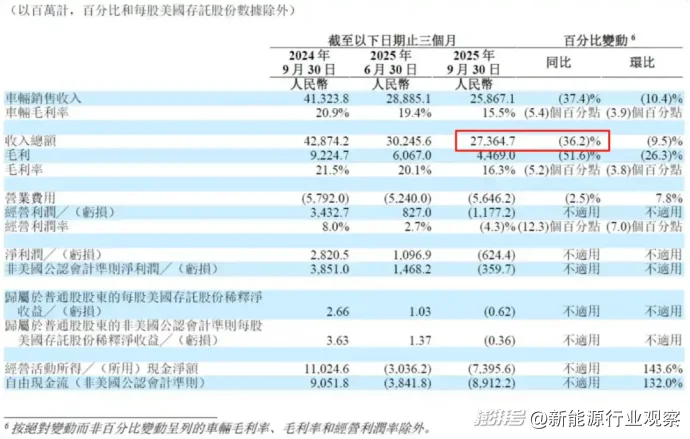 圖/2025年Q3小鵬汽車財(cái)報(bào)部分?jǐn)?shù)據(jù)