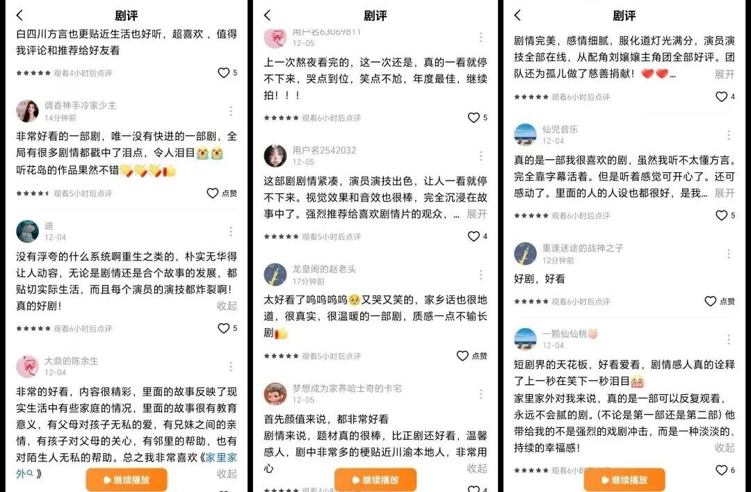這些反饋與此前《十八歲太奶奶駕到,重整家族榮耀》《沒關(guān)系,是家人啊》等家庭向作品的觀眾評(píng)價(jià)高度相似。這一共性現(xiàn)象清晰地表明,用戶對(duì)短劇的需求,正從即時(shí)性的情緒宣泄,轉(zhuǎn)向深層次的情感共鳴,對(duì)情感質(zhì)感的追求愈發(fā)凸顯。而真摯的情感表達(dá),或許正是內(nèi)容消費(fèi)中從未改變的核心需求。