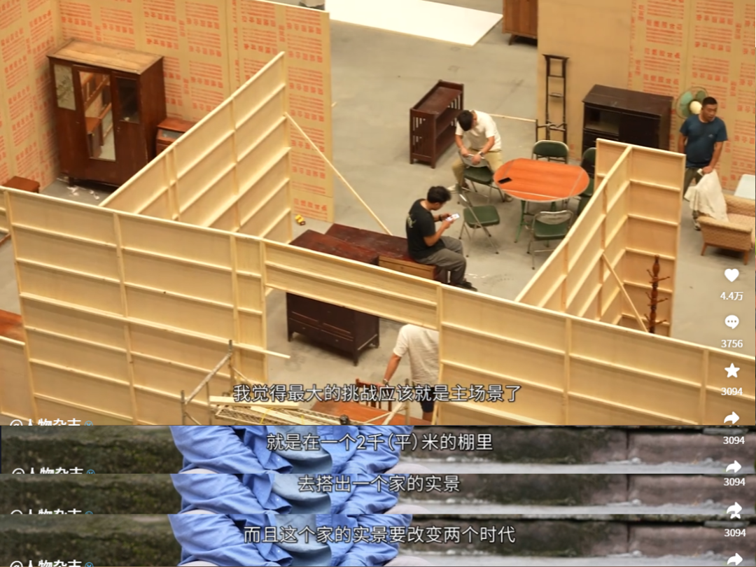 《家里家外2》的幕后紀(jì)錄片,讓更多觀眾看到聽花島團(tuán)隊(duì)用笨功夫打磨作品的縮影:化妝老師凌晨5點(diǎn)的梳妝,服裝組籌備的800件衣服,美術(shù)組在劇中埋下的多個(gè)巧思,楊科南導(dǎo)演對(duì)真實(shí)感的孜孜追求,王道鐵的全心投入,孫藝燃用生命塑造人物,制片人劉菲堅(jiān)持讓大家睡好、休息夠,還有美術(shù)組和道具組的互相幫忙。