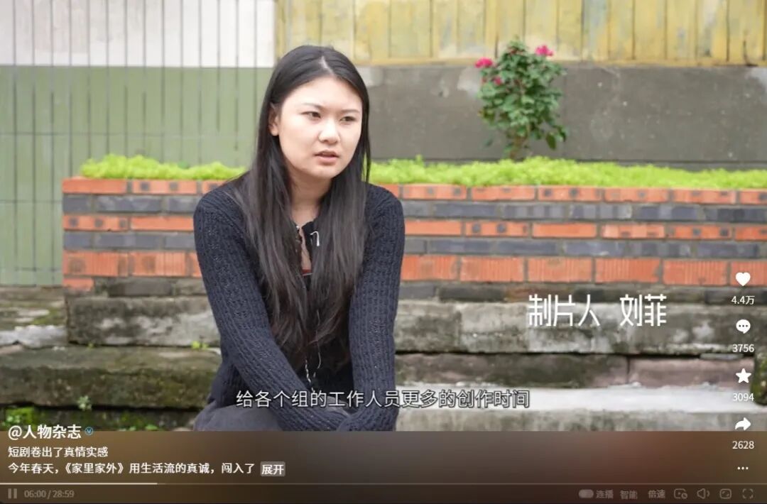 從細(xì)節(jié)考據(jù)到與頂流歌手合作,每一處都體現(xiàn)了對(duì)精品化的追求。甚至在《家里家外2》的紀(jì)錄片中,更多可以看到的是對(duì)短劇人的關(guān)懷。劇組會(huì)盡量給每一位工作人員預(yù)留足夠的休息時(shí)間和情感醞釀的空間。這樣人本位的劇組,也讓團(tuán)隊(duì)的工作氣氛更好,大家齊心協(xié)力的努力做出好作品。