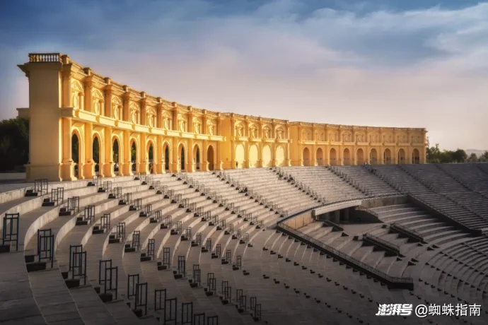 坐在層疊的看臺(tái)上看一場(chǎng)日落,柔和溫暖的光線照在米黃色的羅馬柱上,真的絕美,電影感直接拉滿!