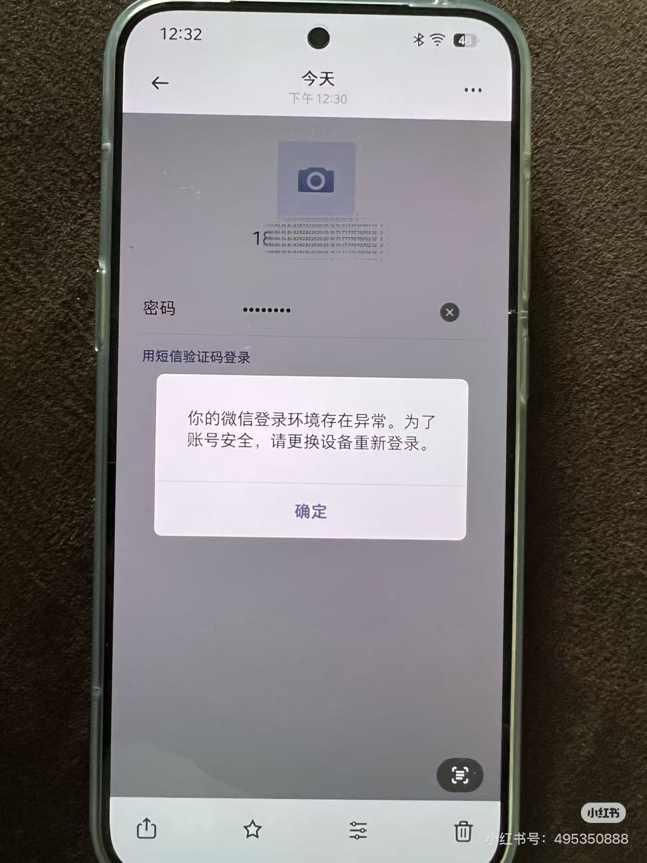 有網(wǎng)友發(fā)帖稱,收到豆包手機(jī)后成功登錄微信5分鐘后被迫下線,理由是登錄環(huán)境異常。圖片來源:小紅書。