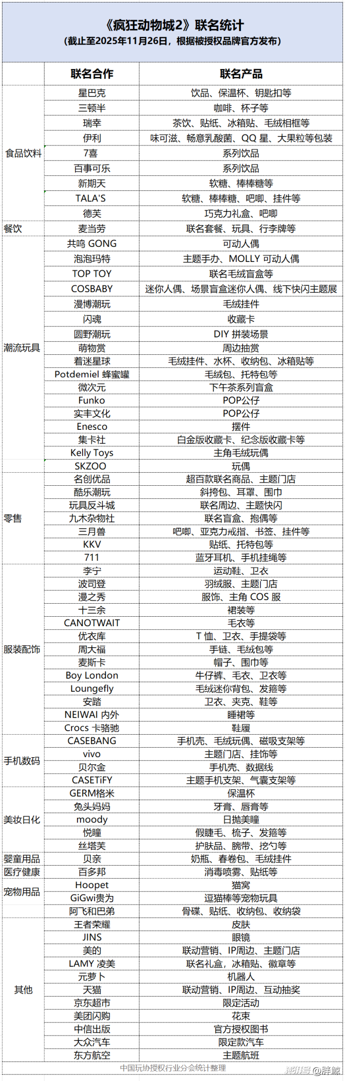 中國玩協(xié)授權(quán)分會統(tǒng)計《瘋狂動物城 2》聯(lián)名