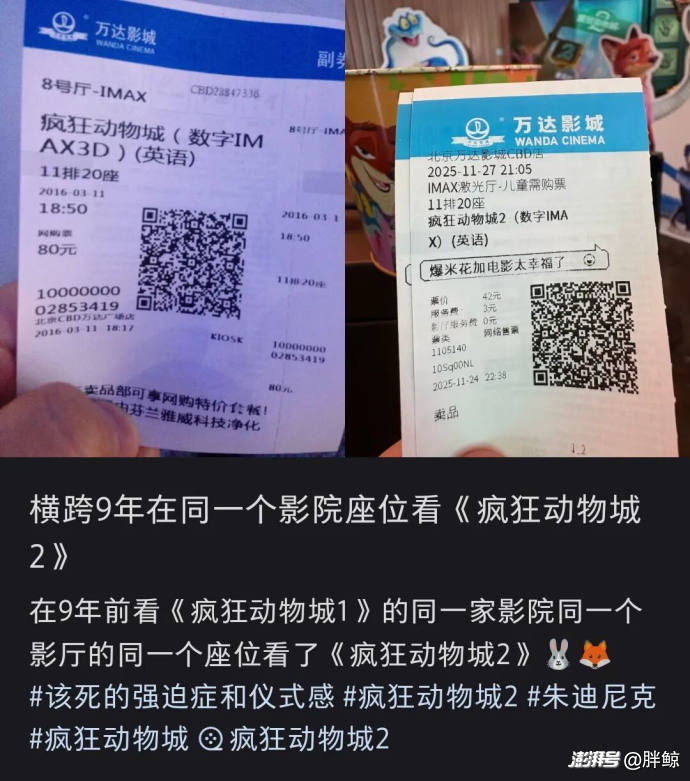 有人在小紅書曬出兩張電影票——橫跨 9 年、同一家影院、同一個座位看《瘋狂動物城》。時間能讓少年長大成人,但朱迪和尼克,好像從未真正離開。