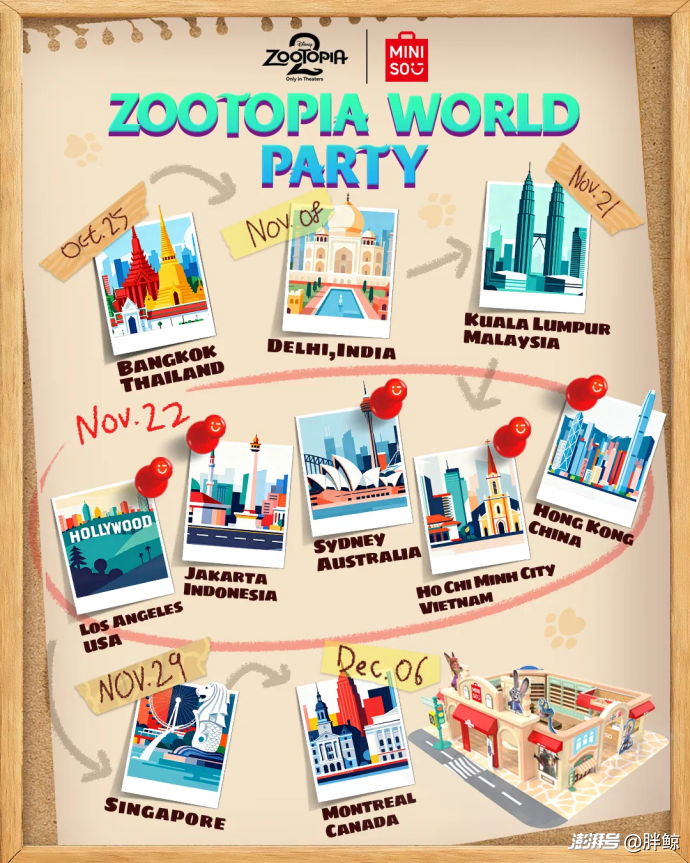 《瘋狂動物城2》是名創(chuàng)優(yōu)品與迪士尼深化全球合作的關(guān)鍵里程碑。品牌不僅一次性推出覆蓋全品類的上百款新品,更巧妙利用電影角色體型差的記憶點,將“MINISO”與“MINI MINISO”的門店標識,以契合世界觀的方式植入電影畫面。