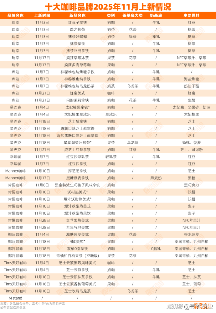 在延續(xù)了10月醇厚風(fēng)味基調(diào)的同時,市場呈現(xiàn)“暖養(yǎng)”與“輕果”兩種趨向:茶飲忙著“加料”養(yǎng)生,咖啡用果咖新品為冬季帶來了“清爽感”。