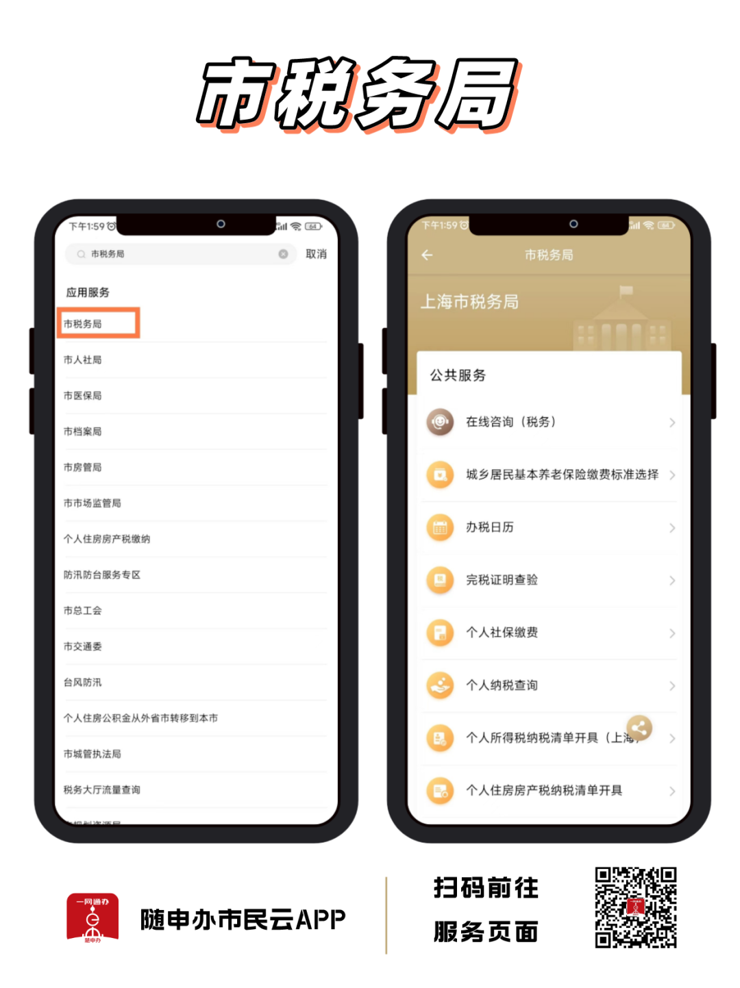 “隨申辦市民云”APP【市稅務(wù)局】專區(qū),內(nèi)含“稅務(wù)咨詢” “辦稅日歷” “社保繳費(fèi)”等多項(xiàng)公共服務(wù)。