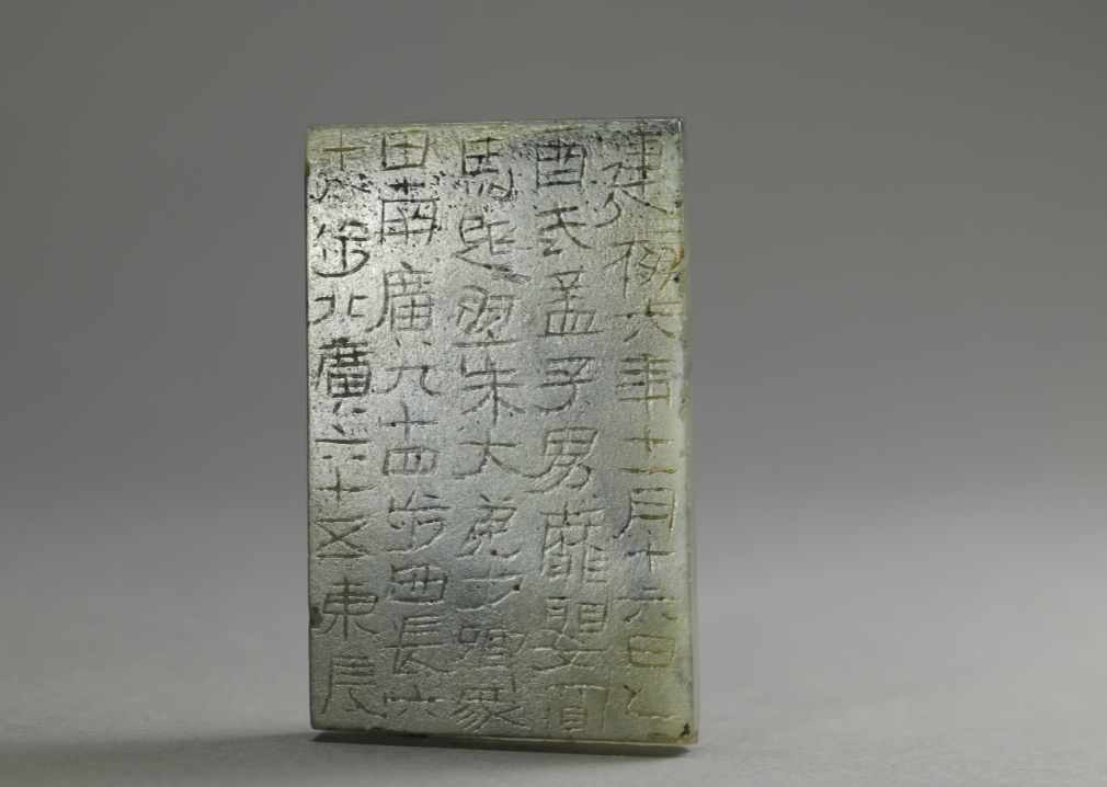 上海市博物館藏玉買地券(東漢、建初六年)。買地券是古代以地契形式置于墓中的隨葬明器,既是墓地購置憑證,又是敬告土地神靈,讓墓主靈魂在冥間免受干擾的通報文書。此件買地券為迄今發(fā)現(xiàn)的唯一玉質(zhì)作品。