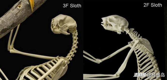 樹懶可謂是“骨骼清奇”,三趾樹懶有著驚人的9塊頸椎,可別小看它,包括脖子最長的動物——長頸鹿在內(nèi),大部分哺乳動物都只有7塊頸椎。而二趾樹懶也不簡單,它們有21對肋骨!是肋骨數(shù)量最多的哺乳動物。