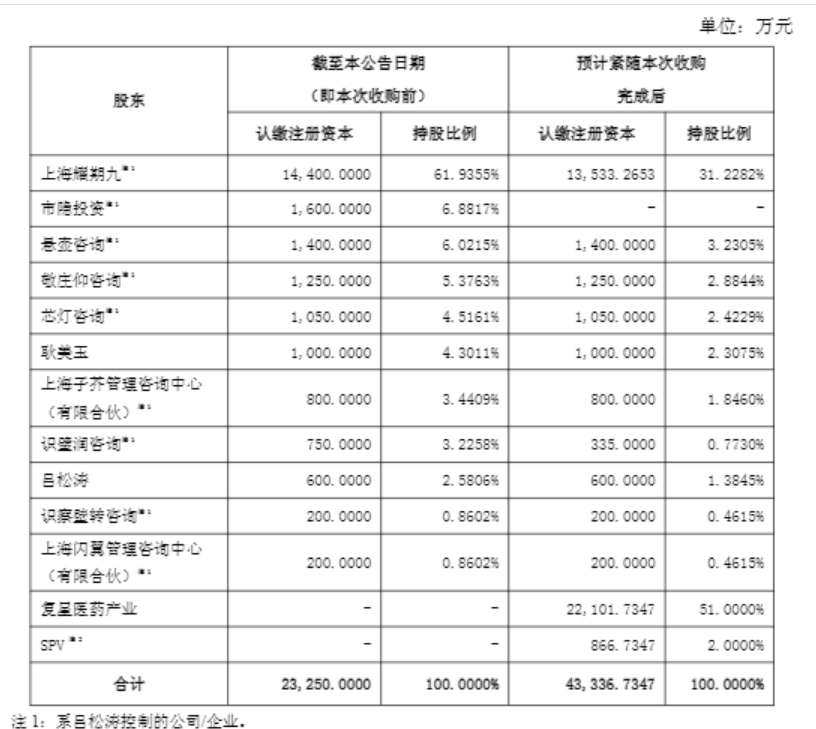 綠谷醫(yī)藥被收購前后的股權(quán)變化 來源:復(fù)星醫(yī)藥公告