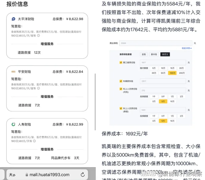 而根據(jù)我們和多位車主接觸,沒(méi)出險(xiǎn)的情況下,特斯拉第二年的保費(fèi)可以降到5500元左右,但凱美瑞的報(bào)價(jià)則為5000元以內(nèi)。這高出的部分,實(shí)實(shí)在在地侵蝕著電車在能源上省下的優(yōu)勢(shì)。