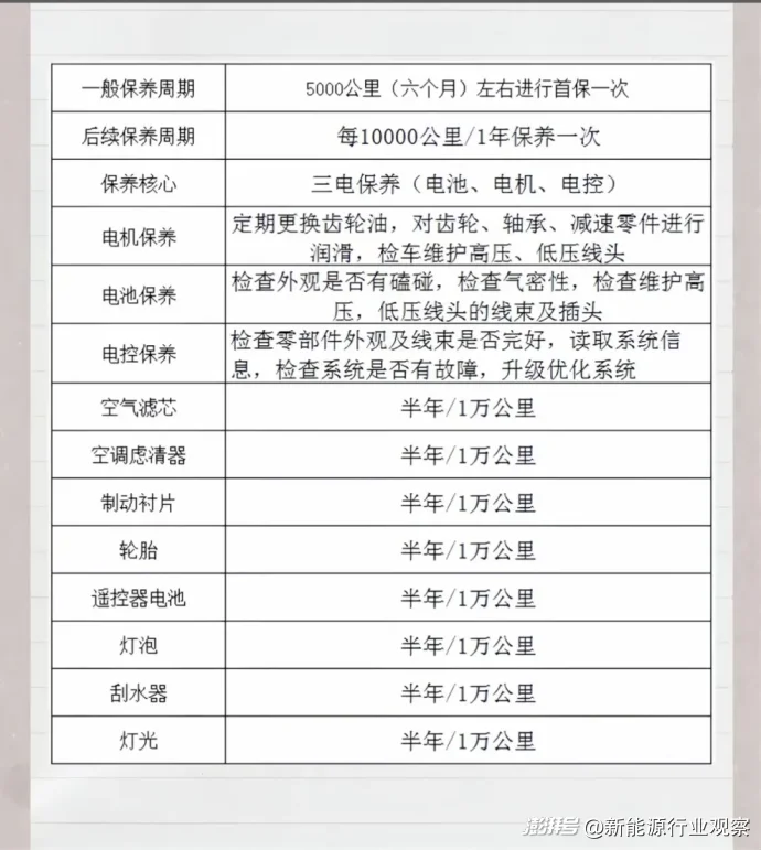 圖/新能源車保養(yǎng)項(xiàng)目參考