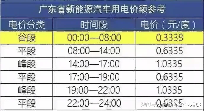 圖/廣東省新能源汽車用電價(jià)額參考