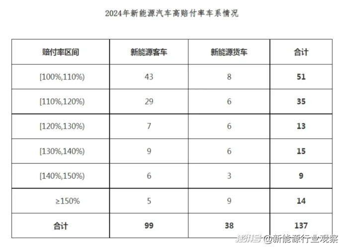 圖/2024年新能源汽車高賠付率車系情況