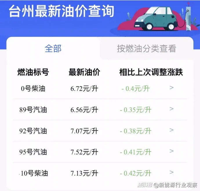圖/臺(tái)州油價(jià)情況