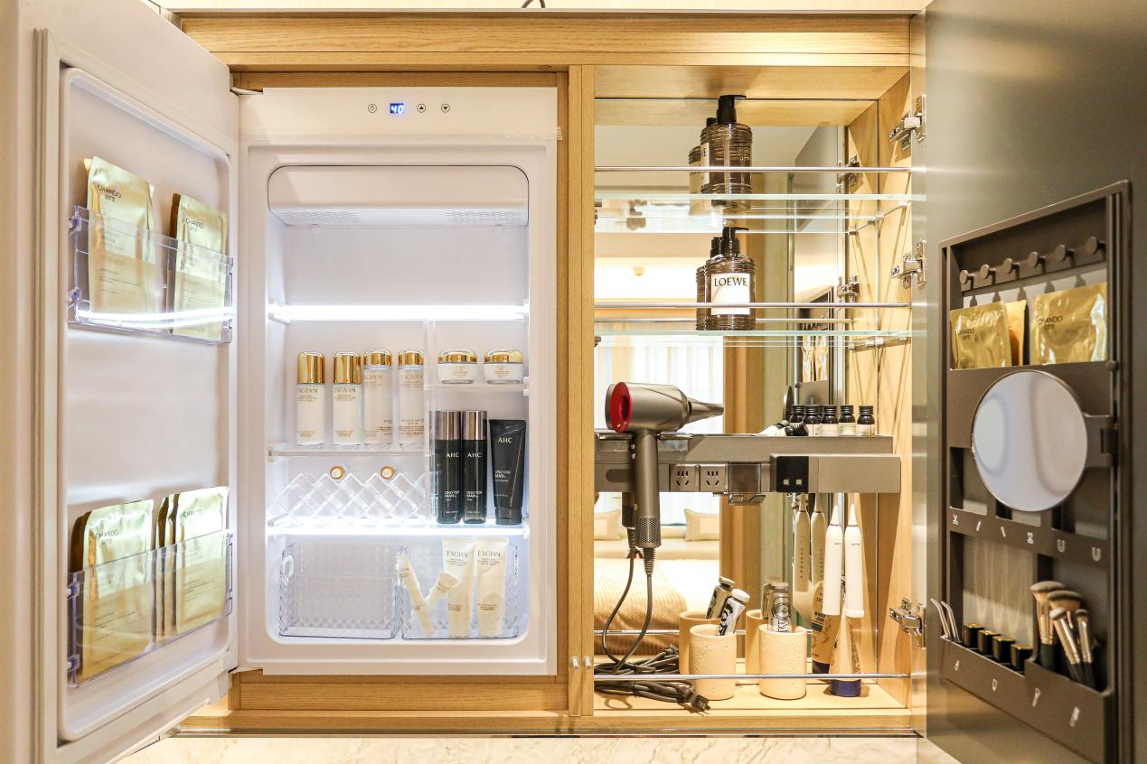 在配備美妝冰箱和美容浴霸的主衛(wèi)里,每日的洗漱護(hù)理變成一場(chǎng)寵愛(ài)自己的儀式。