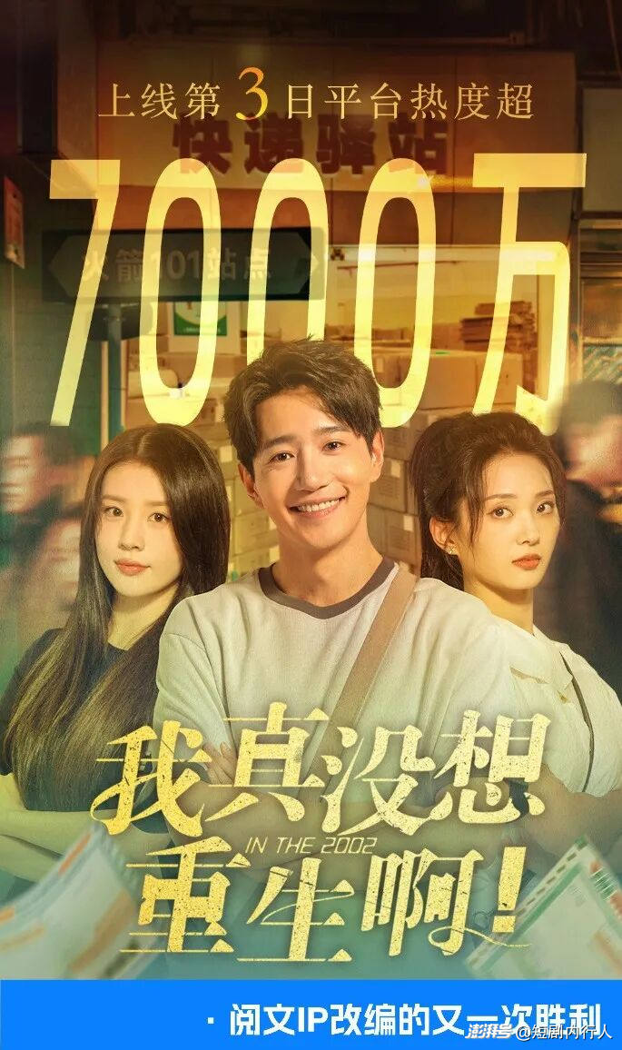 其一,人設(shè)設(shè)定極具張力。男主重生前是社會(huì)精英、鉆石單身漢,帶著 35 歲的人生閱歷重回高三,既為校園生活與創(chuàng)業(yè)劇情注入了降維打擊的爽感 —— 比如男主創(chuàng)業(yè)線中,他靠超前認(rèn)知,在電商尚未成熟的 2002 年,拿下校園快遞代理業(yè)務(wù),并拓展至全省高校。同時(shí)又給足觀眾心理安全感,為劇集輕松的輕喜劇風(fēng)格奠定基礎(chǔ)。