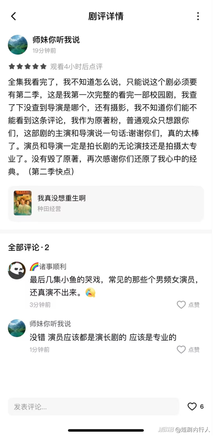 評(píng)論區(qū)里“百年難遇蕭容魚,世間絕無沈幼楚” 的感慨刷屏,原著粉留言 “感謝你們還原了我心中的經(jīng)典(第二季快點(diǎn))”,更有網(wǎng)友急盼 “有沒有第二部?。坎恍形彝顿Y!”