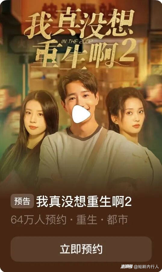 目前,冷啟動(dòng)的《我真沒想重生啊》上線即爆,憑借劇粉自來水,其續(xù)作《我真沒想重生啊2》短短 4 日,在短劇平臺(tái)預(yù)約人數(shù)已突破 64 萬。此外,《我家娘子,不對(duì)勁2》預(yù)約量突破 137 萬,僅憑前作口碑就提前鎖定了下一波流量高峰。