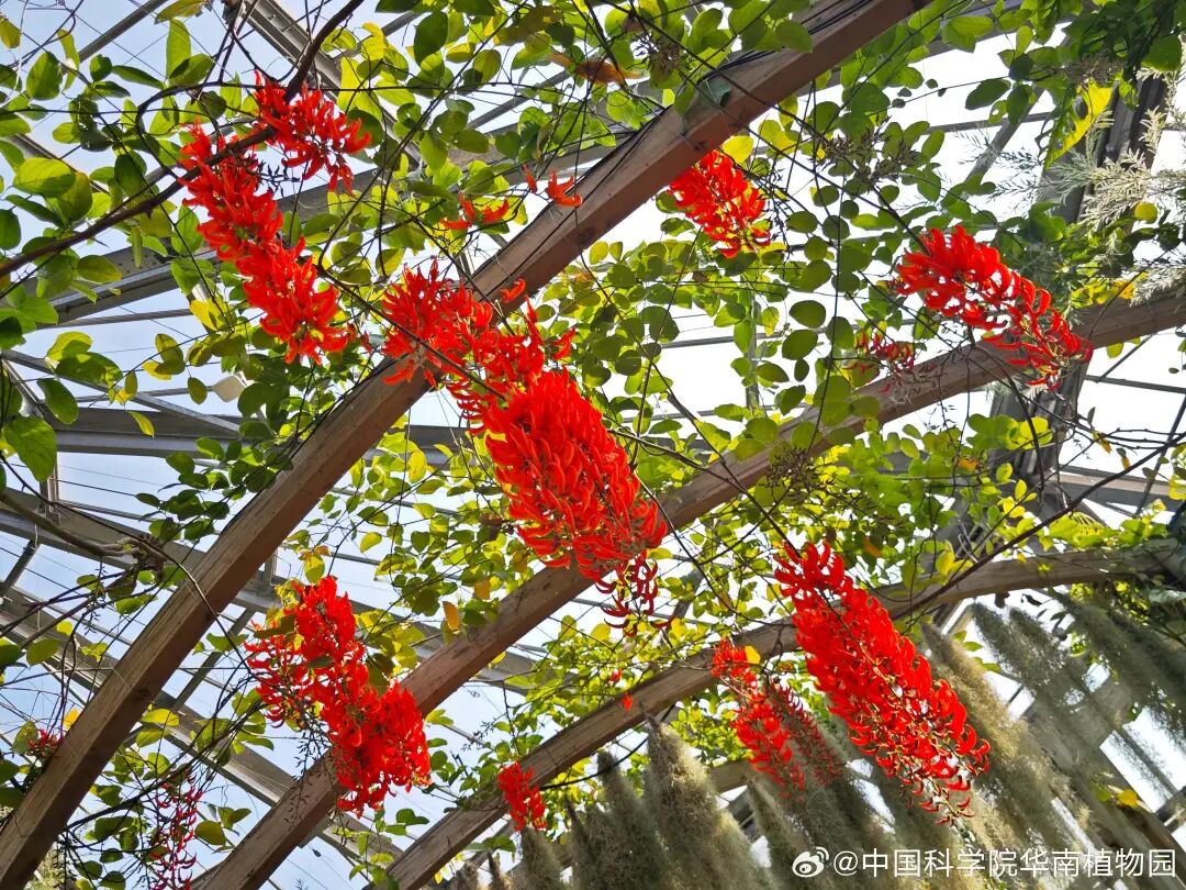 熱著熱著,華南國家植物園的紅花油麻藤突然爆開了一串串烈火紅焰!鮮艷的色彩正如12月廣東不減的暖意。一睹為快↓↓↓