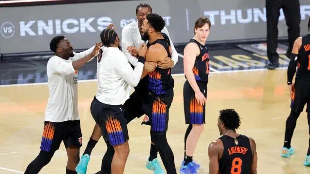 尼克斯歷史上,上一個總冠軍是1973年,上一個東部冠軍是1999年,總決賽輸給馬刺,今天贏回來了。