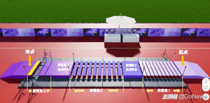 吊橋穿越要經(jīng)過(guò)三種不同間距的橋面段,看似不長(zhǎng)的一段距離,“哐當(dāng)”成了機(jī)器人選手們的主旋律。重心低的機(jī)器狗還好,人形機(jī)器人摔一下看著就肉疼,還有的雙足機(jī)器人另辟蹊徑,在腳底捆上了加長(zhǎng)的木板,讓人直夸“小機(jī)靈鬼”。