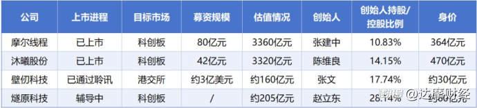 沐曦股份創(chuàng)始人陳維良的身價也水漲船高。陳維良直接持有沐曦股份5.03%的股份,并通過上海驕邁、上海曦驥兩個持股平臺持有公司9.12%的股份,合計持股比例為14.15%。按最新股價計算,陳維良的身價已達到470億元。