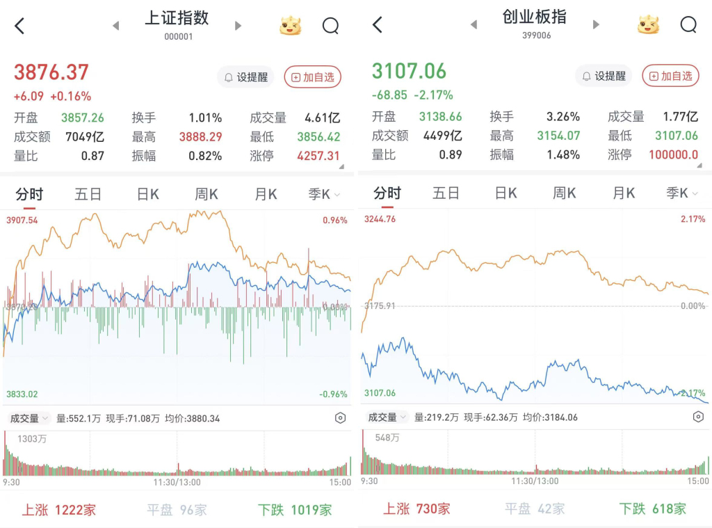 至收盤,上證綜指漲0.16%,報3876.37點;科創(chuàng)50指數(shù)跌1.46%,報1305.97點;深證成指跌1.29%,報13053.97點;創(chuàng)業(yè)板指跌2.17%,報3107.06點。