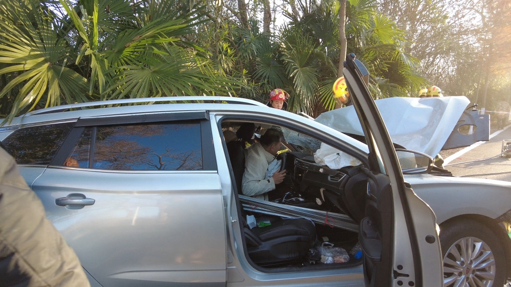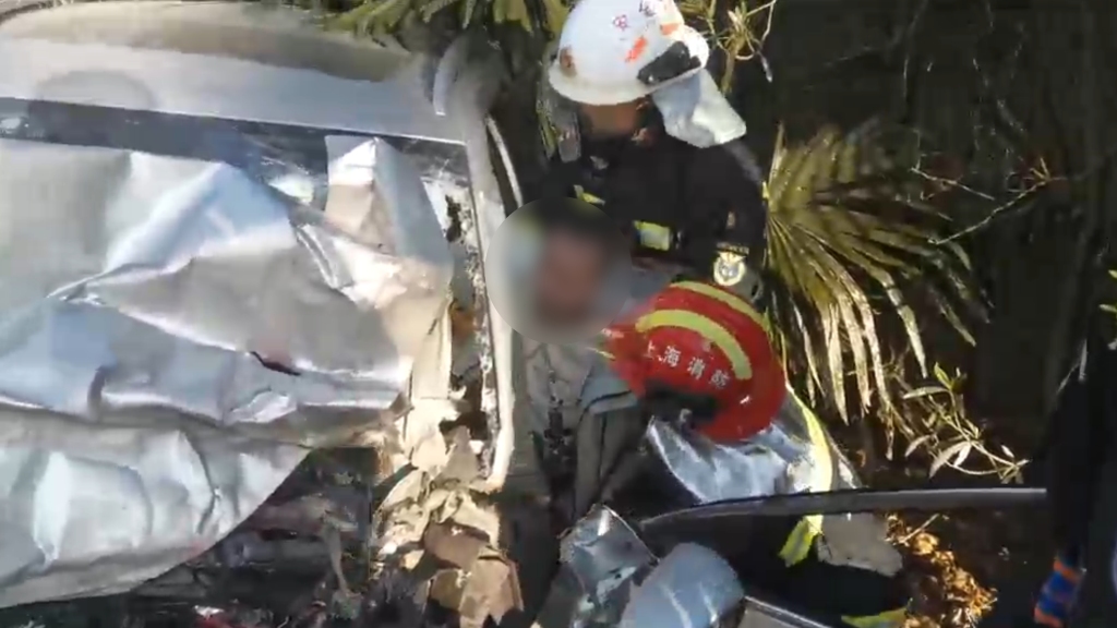 車禍后司機(jī)卡在座椅里,上海消防員邊安撫邊破拆5分鐘救出送醫(yī)