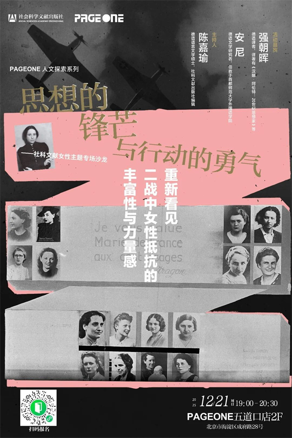 北京|思想的鋒芒與行動(dòng)的勇氣:重新看見二戰(zhàn)中女性抵抗的豐富性與力量感——社科文獻(xiàn)女性主題專場(chǎng)沙龍