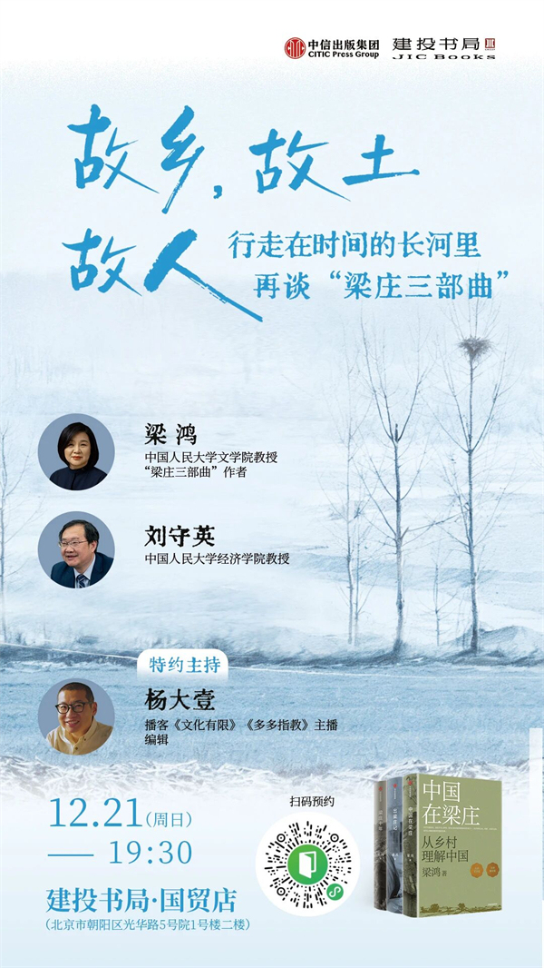 隨著我們每個(gè)人的成長(zhǎng),故鄉(xiāng)似乎是一個(gè)離我們?cè)絹碓竭h(yuǎn)的地方。今天的我們?nèi)绾卫斫夤枢l(xiāng)?故鄉(xiāng)的人和風(fēng)景似乎成為了一片朦朧。12月21日,我們邀請(qǐng)“梁莊三部曲”的作者梁鴻老師與中國人民大學(xué)經(jīng)濟(jì)學(xué)院教授劉守英老師共同對(duì)話,并特邀媒體人楊大壹主持。在《中國在梁莊》出版15周年時(shí),我們?cè)俅巍盎氐健绷呵f,關(guān)注一個(gè)個(gè)具體的人的命運(yùn)變化,共同談?wù)勗跁r(shí)間長(zhǎng)河里的故鄉(xiāng)、故土與故人。