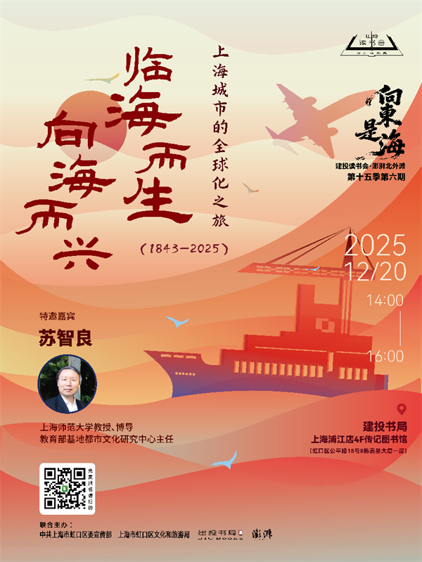 2025年,恰逢中國航海日設(shè)立20周年、鄭和下西洋620周年,上海更躋身世界十大海洋城市之列。12月20日,我們邀請(qǐng)到深耕上海城市史數(shù)十年的學(xué)者——上海師范大學(xué)教授、博導(dǎo),教育部基地都市文化研究中心主任蘇智良,帶領(lǐng)我們展開一場(chǎng)關(guān)于上海與海洋、與世界的深度對(duì)話。本次講座中,蘇智良教授將系統(tǒng)梳理上海自1843年開埠至今的全球化進(jìn)程。他從“海洋之子”的視角出發(fā),探尋上海城市基因中的開放與包容特質(zhì),解讀其如何在不到兩百年的時(shí)間里,從江南一隅迅速崛起為連接世界的樞紐和中國現(xiàn)代化的龍頭。