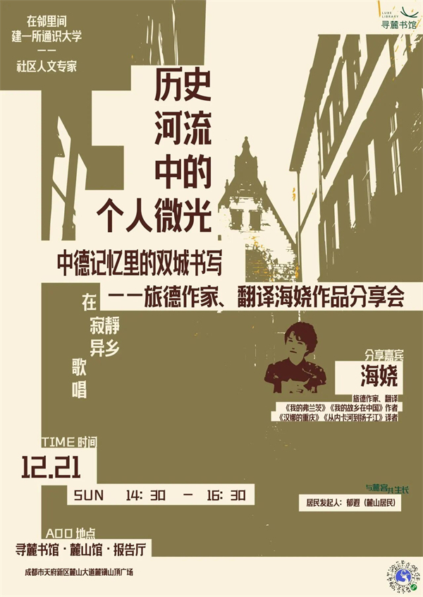 成都|歷史河流中的個(gè)人微光:中德記憶里的雙城書寫——旅德作家、翻譯海嬈作品分享會(huì)