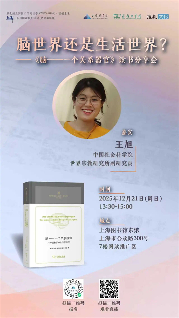 當(dāng)我們談及大腦,是否總不由自主地將其定格為孤立運(yùn)作的“思維中樞”?這個(gè)支配著我們認(rèn)知與行為的器官,究竟是封閉的“腦世界”核心,還是與生活世界緊密相連的有機(jī)部分?由德國學(xué)者托馬斯·福克斯所著的《腦——一個(gè)關(guān)系器官》是一部再版六次的德語當(dāng)代學(xué)術(shù)經(jīng)典,正以全新視角打破這一認(rèn)知迷局。為穿透大腦認(rèn)知的表象,觸摸其“關(guān)系性”本質(zhì),本次分享會(huì)邀請(qǐng)?jiān)摃淖g者、中國社會(huì)科學(xué)院世界宗教研究所副研究員王旭老師,圍繞書中核心觀點(diǎn)展開分享,探討“腦中心主義”的認(rèn)知局限,剖析大腦、身體與環(huán)境的共生互動(dòng)機(jī)制,解讀“具身主體性”的深刻內(nèi)涵。