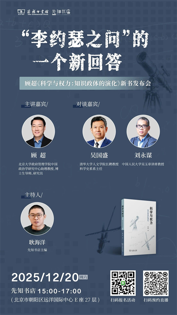北京|“李約瑟之問”的一個(gè)新回答——顧超《科學(xué)與權(quán)力:知識(shí)政體的演化》新書發(fā)布會(huì)