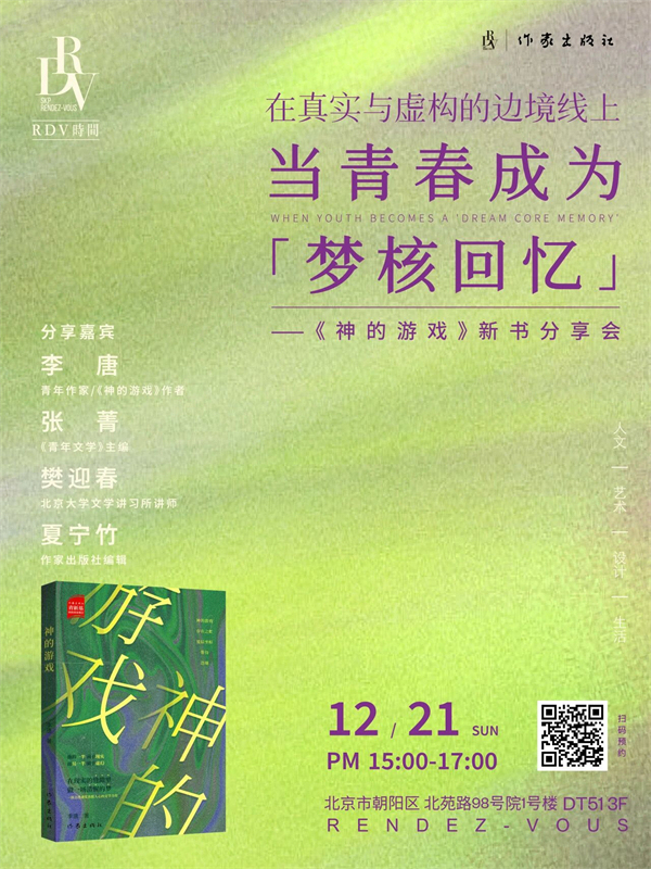 北京|在真實(shí)與虛構(gòu)的邊境線上:當(dāng)青春成為“夢(mèng)核回憶”——《神的游戲》新書分享會(huì)