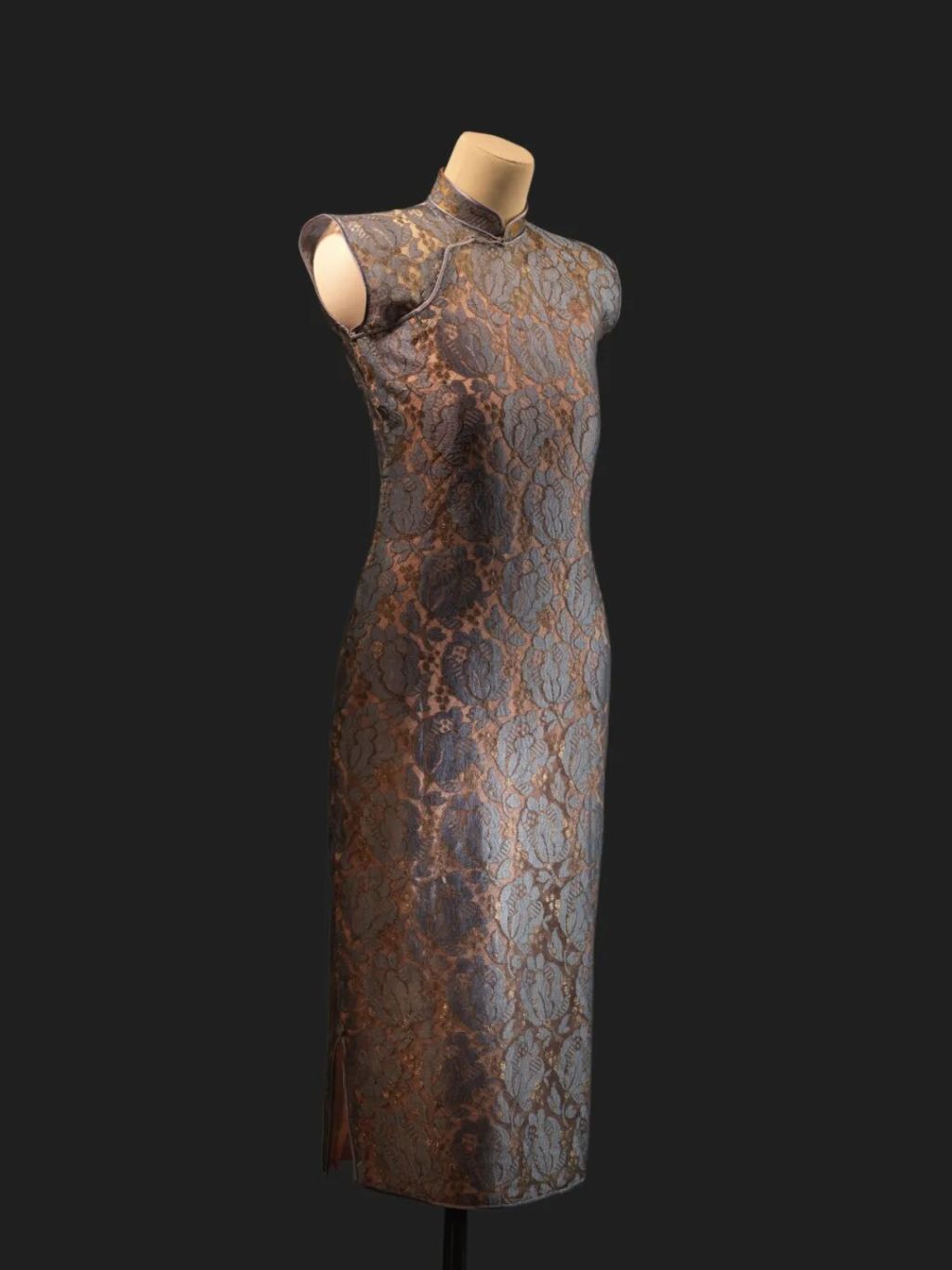 銀灰色玫瑰紋勾金蕾絲旗袍 20世紀(jì)40年代 張信哲先生收藏