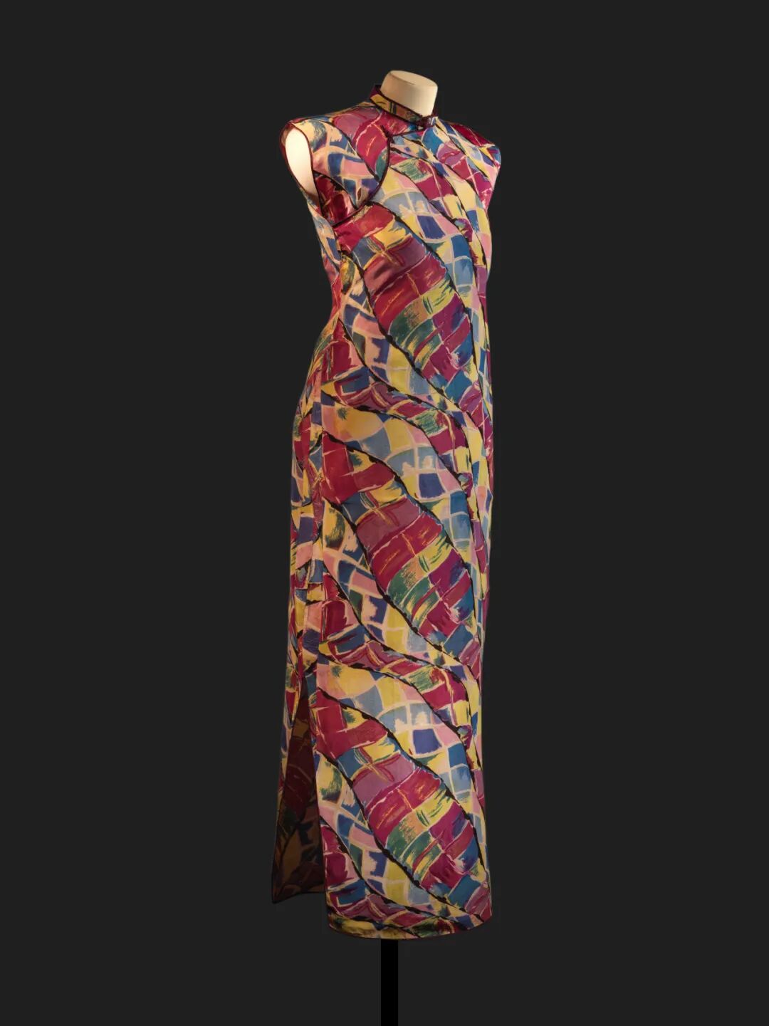抽象彩格紋印花塔夫綢旗袍 20世紀(jì)40年代 張信哲先生收藏