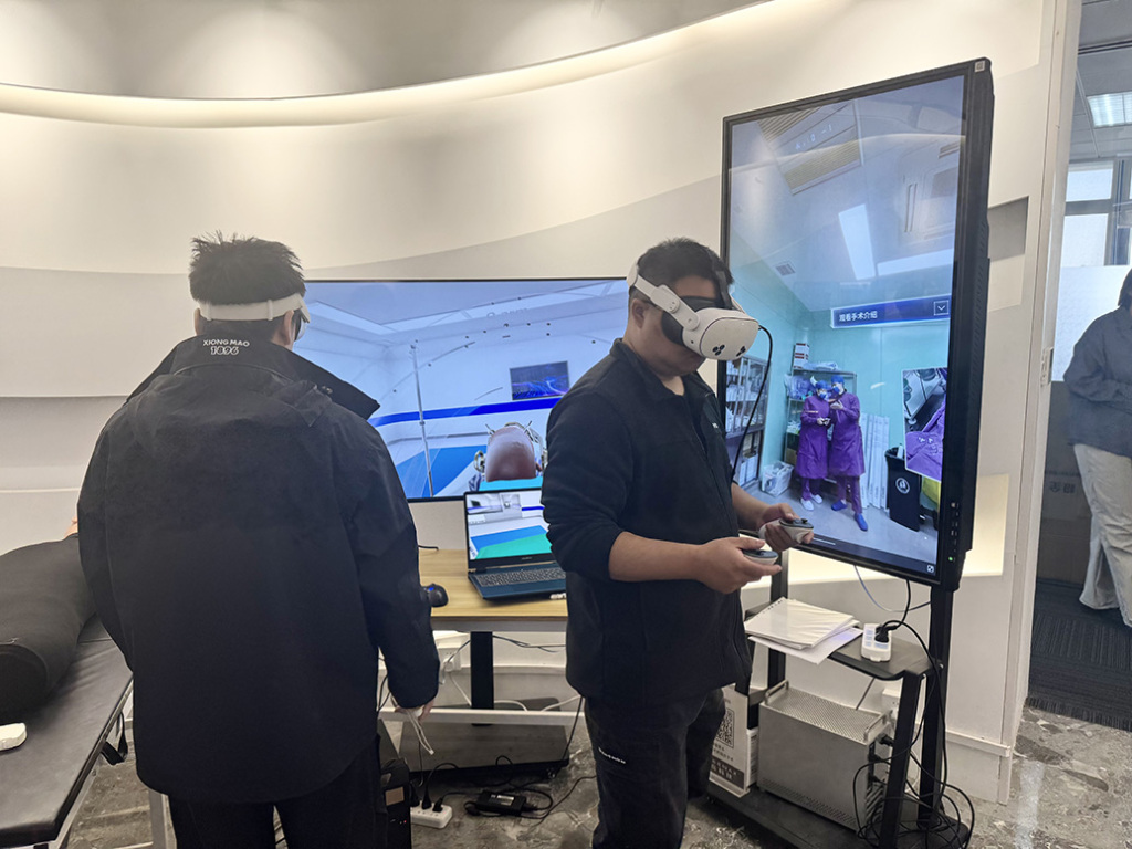 DBS的VR手術(shù)模擬訓(xùn)練系統(tǒng)。 澎湃新聞?dòng)浾?蔣樂(lè)來(lái) 圖