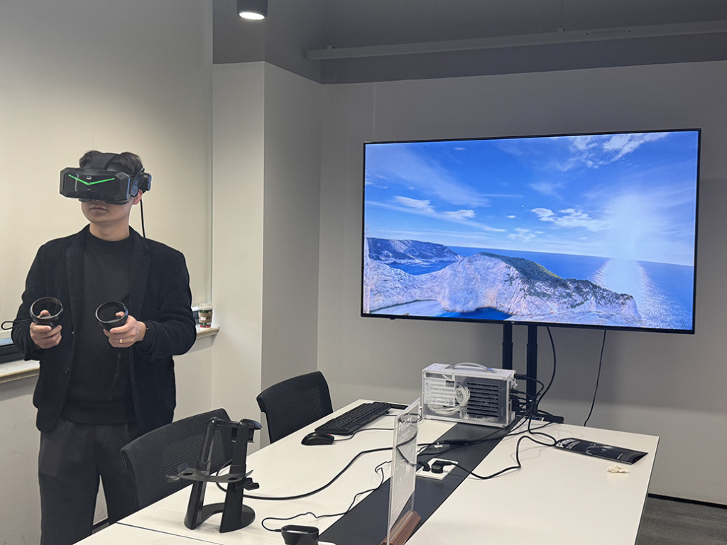 小派科技的Crystal Super和其內(nèi)看到的畫面。 澎湃新聞?dòng)浾?蔣樂(lè)來(lái) 圖