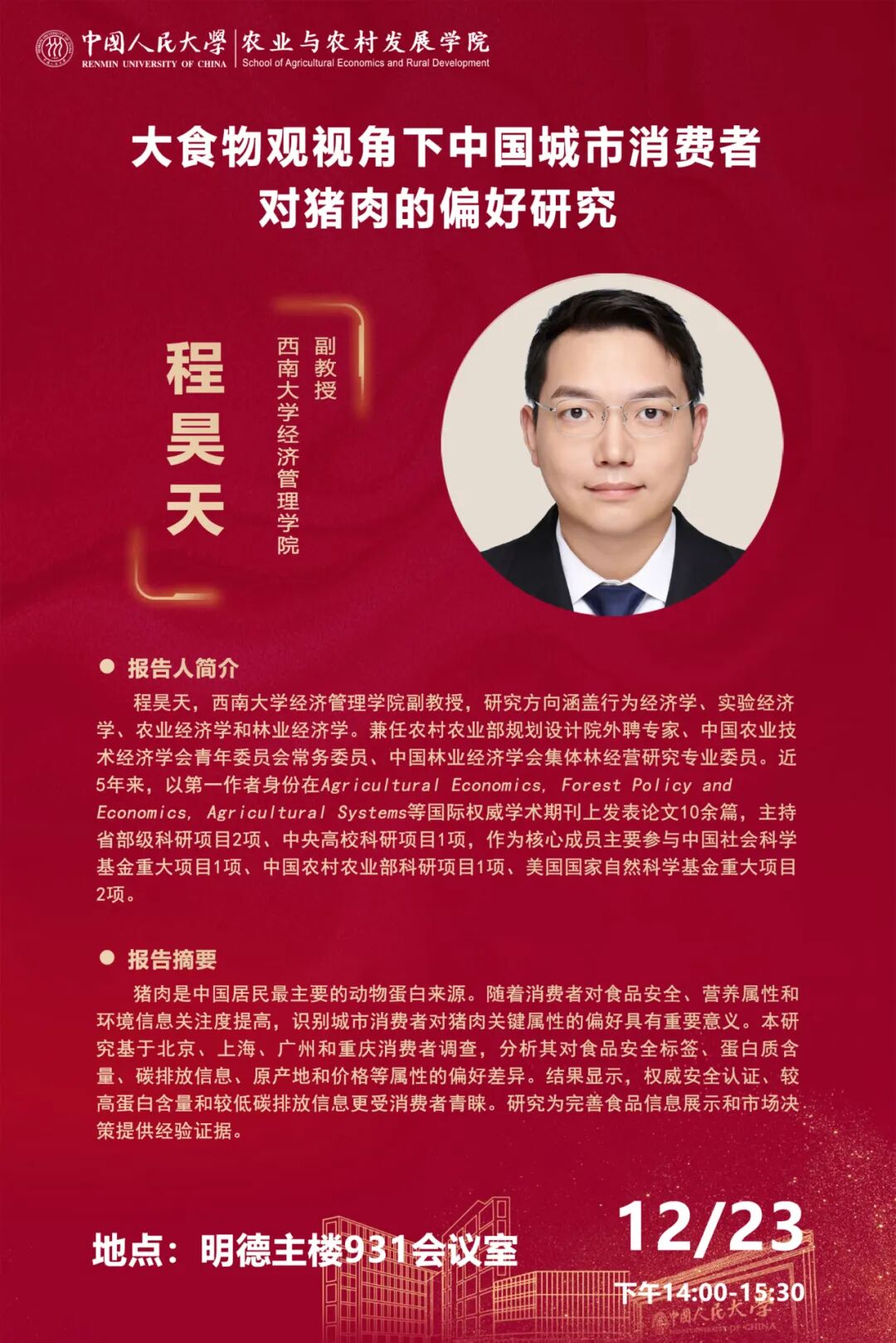 主講人:程昊天(西南大學經(jīng)濟管理學院副教授)