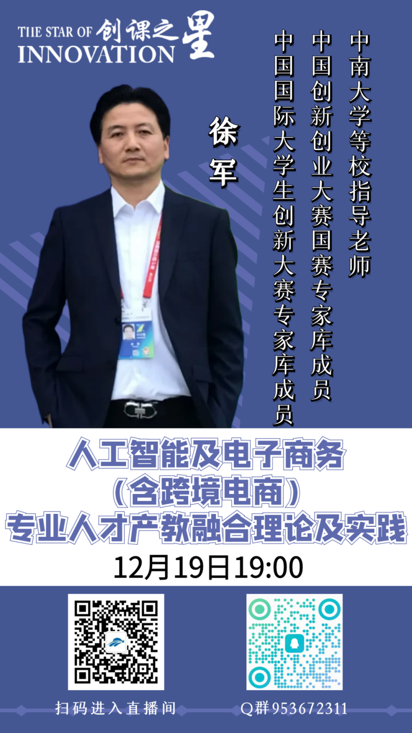 主講人:徐軍(中國國際大學生創(chuàng)新大賽專家?guī)斐蓡T等)